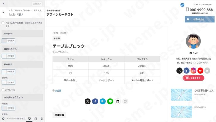 AFFINGER6のテーブルブロックに関するいろんな設定をまとめました!