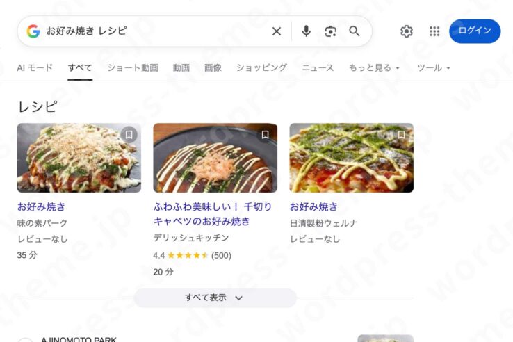 リッチリザルト対応。ラーメン屋 求人、本屋 求人、パン屋 求人のような【業種+求人】というワードで検索するとリッチリザルト の例を見ることができます。